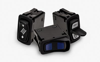 We offer many types of switches including seald rocker, circuit breakers, toggle switches, micro switches, tact switches, rotary switches, rocker and keyboard. They are characterized by high quality and class tightness. The advantage is the possibility of selecting different sizes and colors of caps.